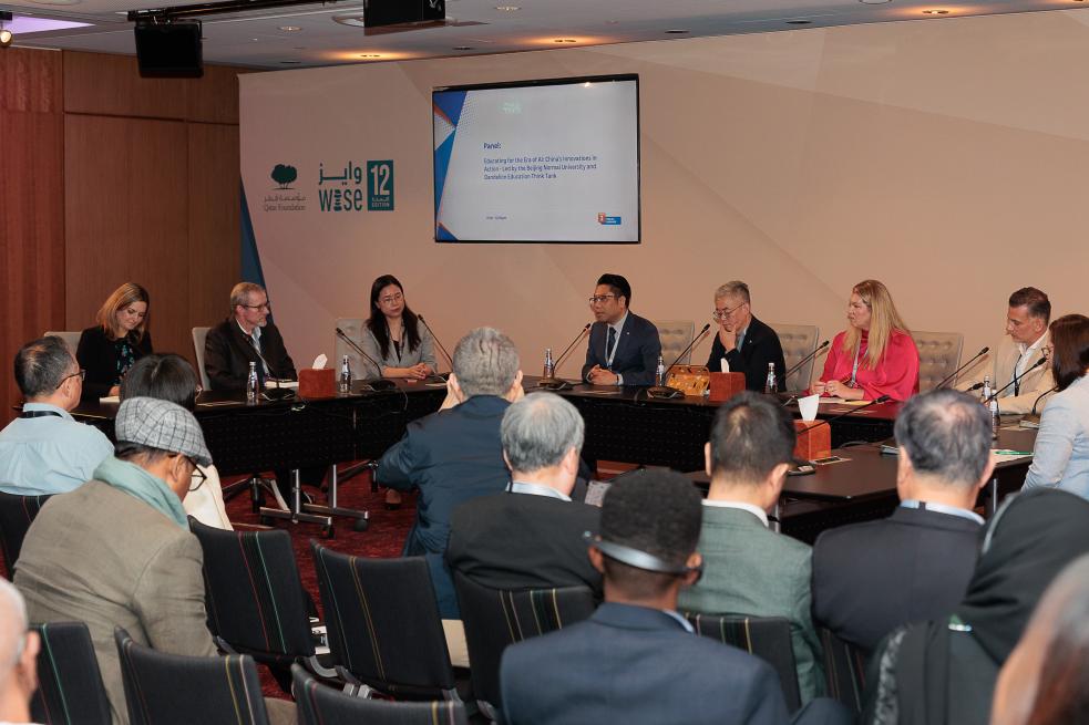 随后的圆桌讨论环节,在WISE宣传总监Shahin Ammane先生的主持下,来自中国、卡塔尔、美国等多国学者、校长围绕“转型中的学校生态系统:人工智能与项目式学习的融合”主题进行深入讨论与分享。
