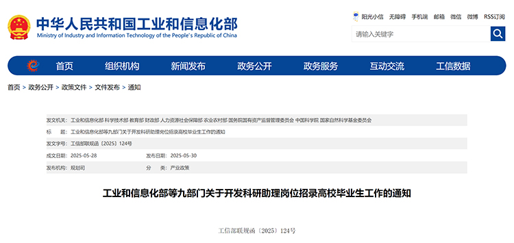 近日,工业和信息化部、科学技术部、教育部等9部门联合发布《关于开发科研助理岗位招录高校毕业生工作的通知》。其中提到,各部门要加大科研助理岗位开发力度,最大限度招录高校毕业生就业。