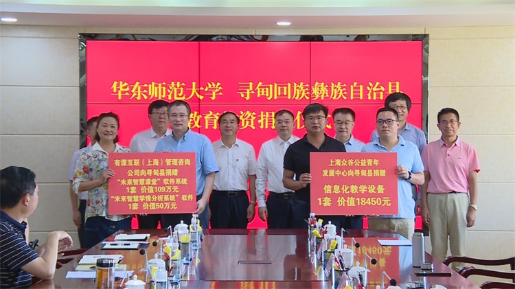 仪式上,马郡对华东师范大学给予寻甸的帮助和支持表示衷心的感谢。他说,定点帮扶工作启动以来,华东师范大学充分发挥师范教育领军高校优势,调动多方资源,持续开展“教育+”系列行动,教育帮扶成效明显。他希望华东师范大学继续关心、支持寻甸教育发展,把教育作为扶贫主阵地、中心靶,出谋划策、把脉问诊,帮助寻甸破解教育发展难题,助力寻甸筑牢百年大计根基,实施教育振兴,实现长足发展。