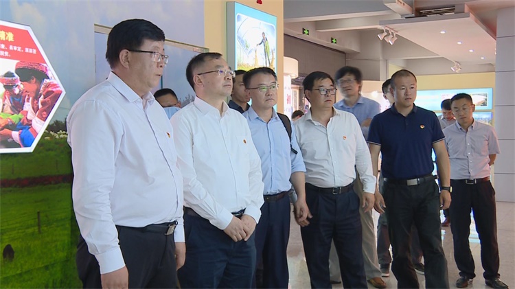 周傲英一行在寻甸县相关部门负责人的陪同下参观寻甸县脱贫攻坚成就展