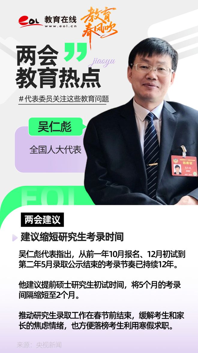 全国人大代表吴仁彪:建议缩短研究生考录时间