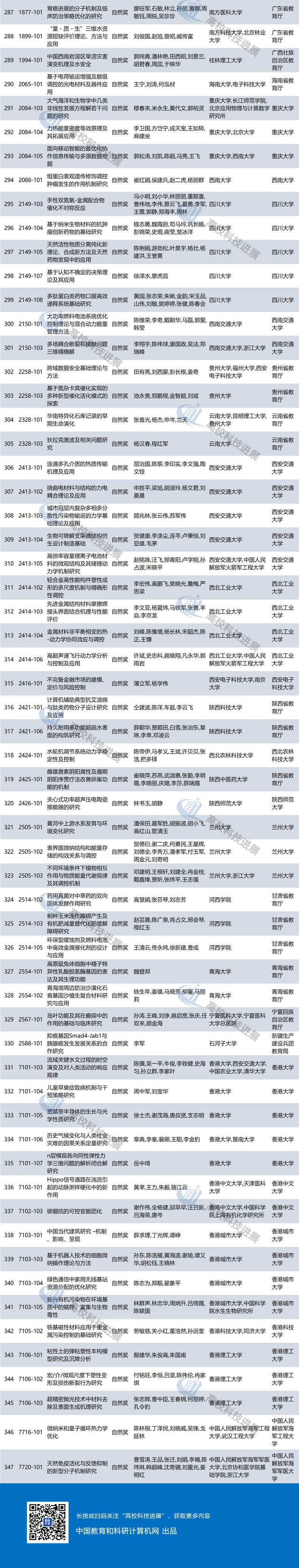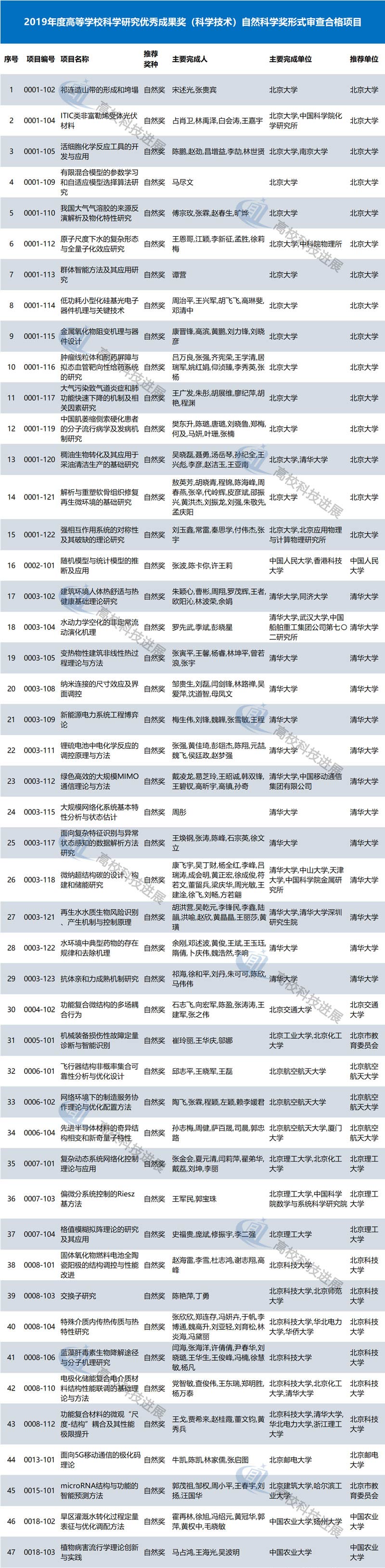 自然科学奖共有347项形式审查合格。从统计结果来看,共有146所高校以第一完成单位牵头的项目通过审查,形式审查合格项目较多的高校分别是北京大学15项,清华大学和上海交通大学分别为13项,复旦大学10项,南京大学9项,浙江大学和华南理工大学分别为8项,南通大学7项,北京科技大学、北京师范大学、大连理工大学和山东大学均为6项,东北大学、东南大学、四川大学、西安交通大学和香港大学各有5项。