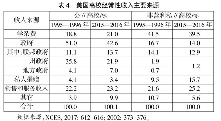 在高校经费来源中政府投入占比下降的背景下,有文献夸大美国高校经费中学杂费的占比和校友捐款的作用,并以此得出结论:美国“大学经费来源以社会和个人为主”。