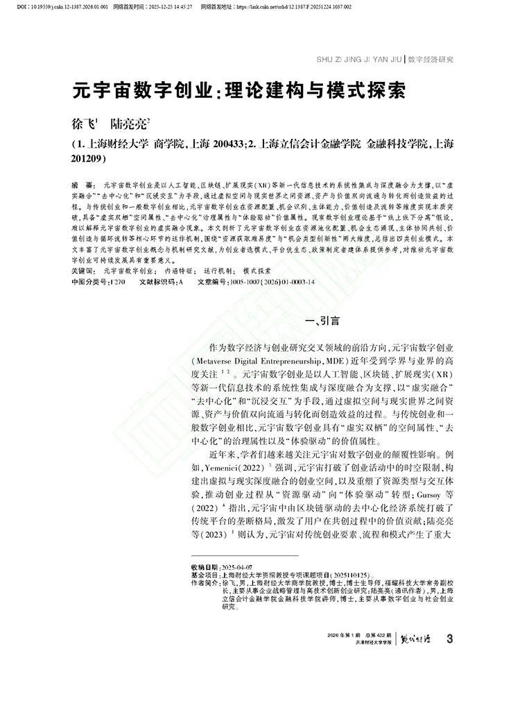 徐飞 陆亮亮|元宇宙数字创业:理论建构与模式探索