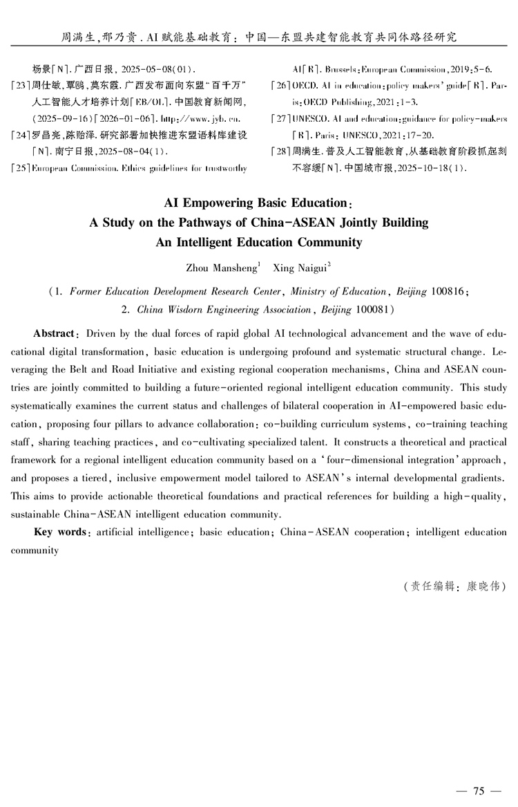周满生 邢乃贵|AI赋能基础教育:中国—东盟共建智能教育共同体路径研究