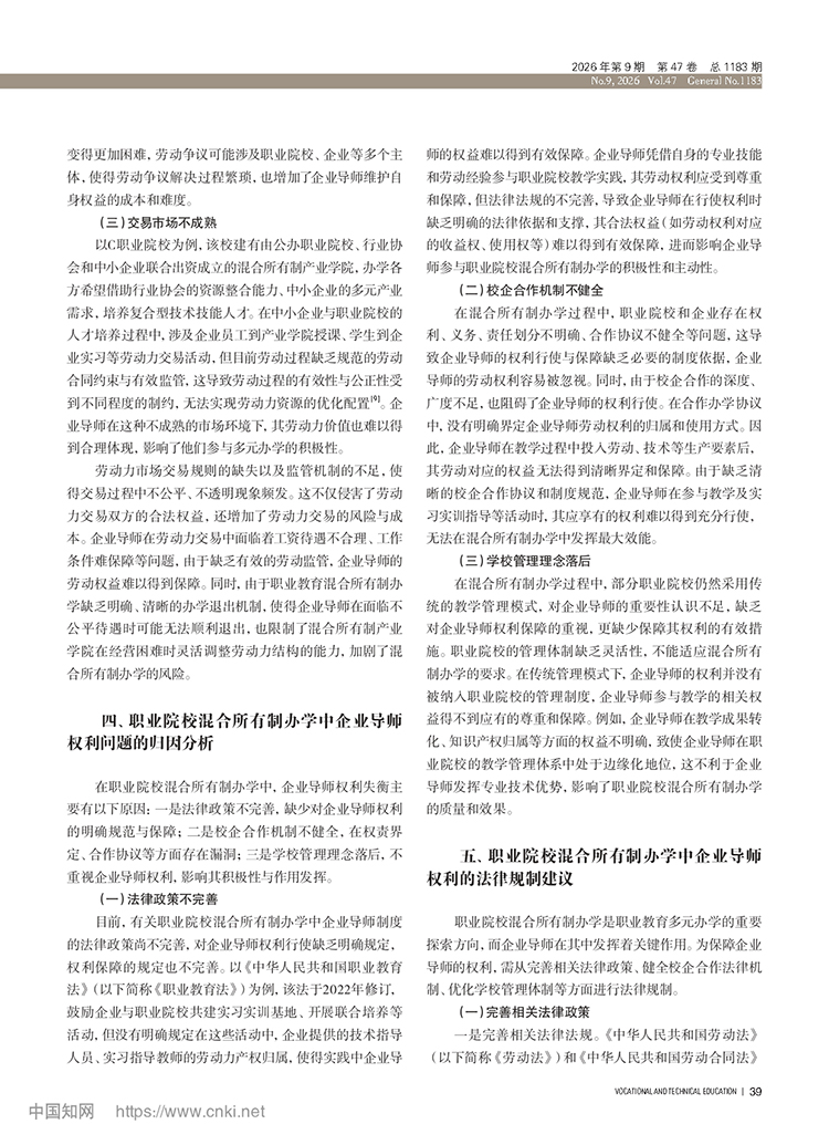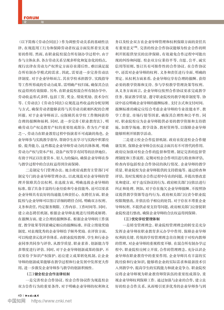 黄亚宇 冯用军:职业院校混合所有制办学中企业导师权利保障问题研究