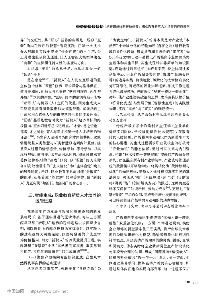 尚晶 冯用军|从转识成技到转技成智:职业教育新质人才培养的逻辑转向