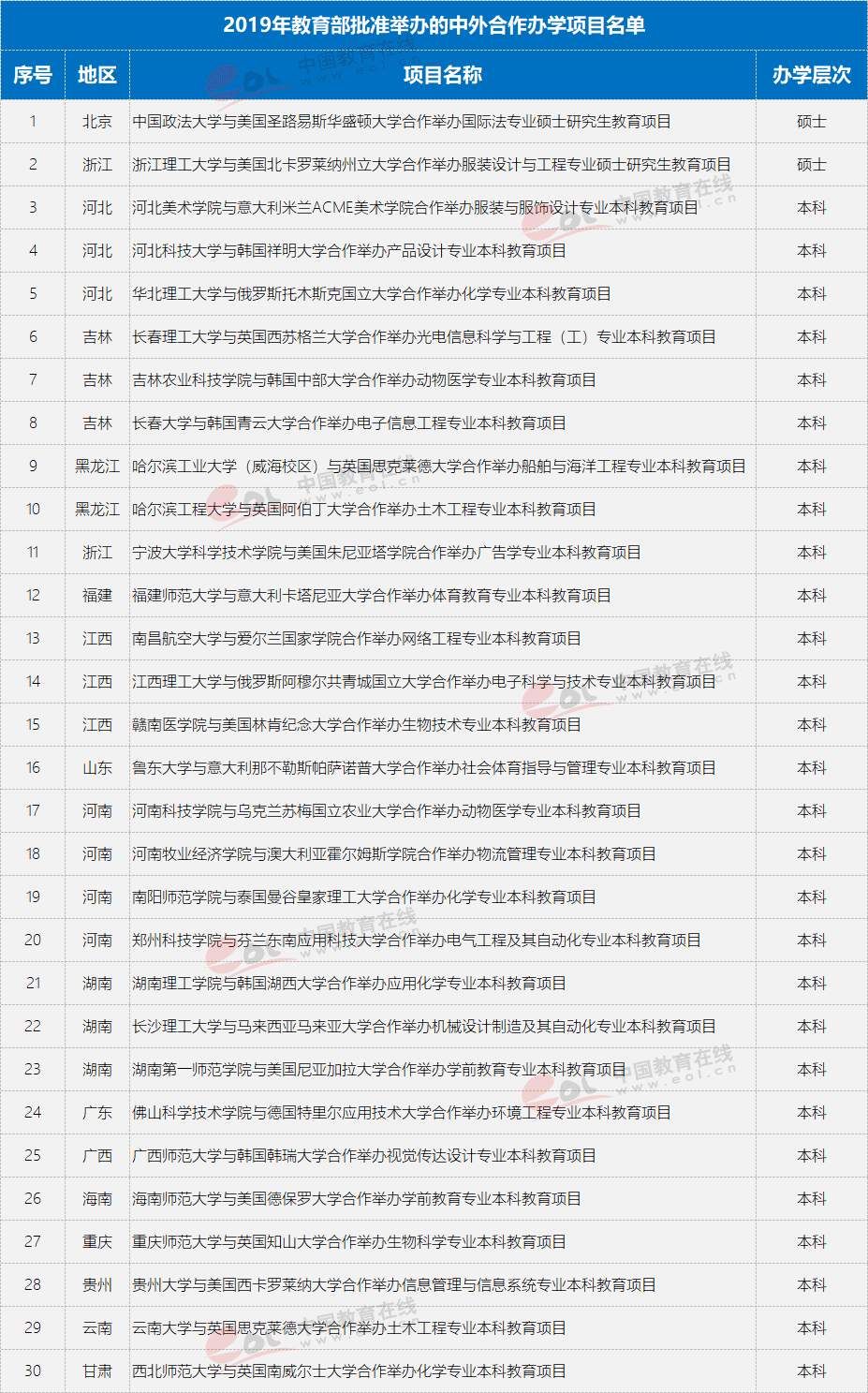 教育部关于批准2019年上半年中外合作办学项目的通知