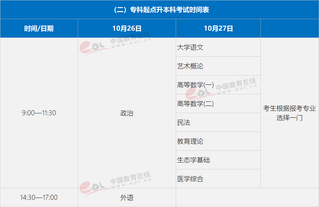 2.专科起点升本科招生专业所对应的考试科目按《专科起点升本科专业与统一考试科目对照表》(教学厅〔2017〕12号文附件4)执行。