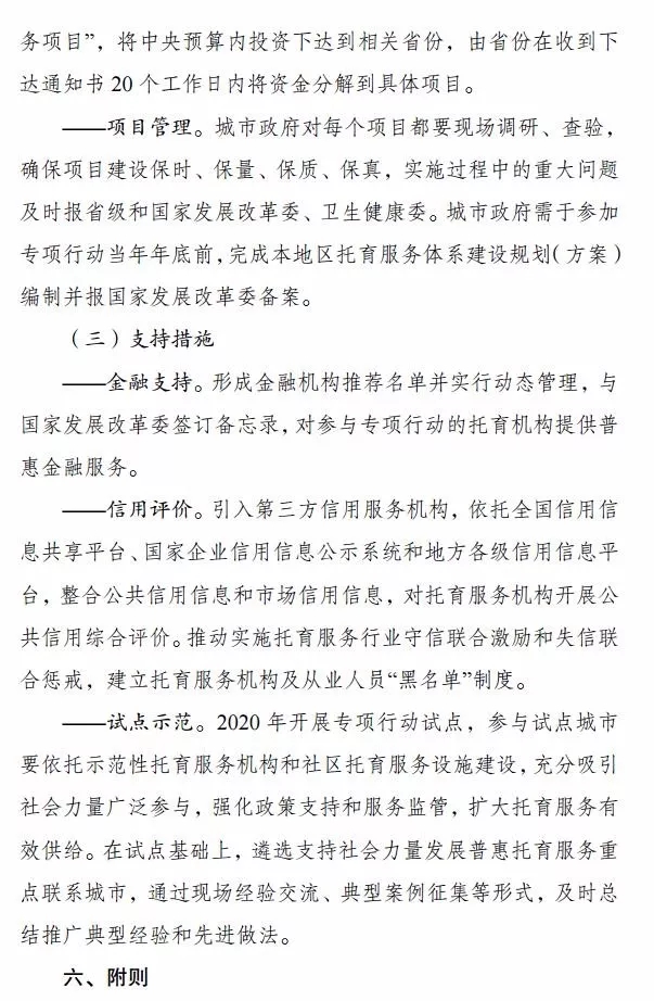 现印发给你们,请各地按照《实施方案》及附件《支持社会力量发展普惠托育服务专项行动项目和资金管理办法(试行)》要求,在教育现代化推进工程专项下,认真做好项目前期准备工作,加强对《实施方案》实施的监督检查,确保建设质量,提高资金使用效益。国家发展改革委