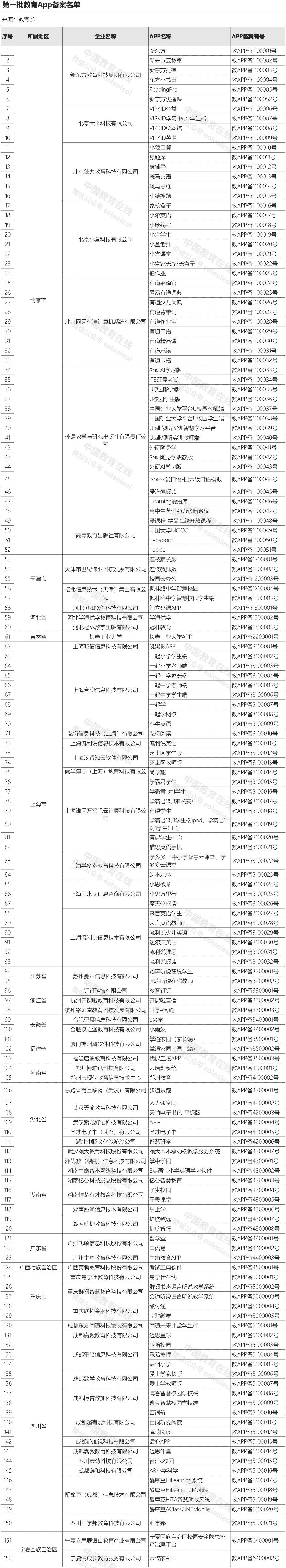 教育部公布第三批教育APP备案名单。根据公告,在2019年12月25日至2020年1月14日期间,各地共完成了对605家企业的1300个教育App备案工作。