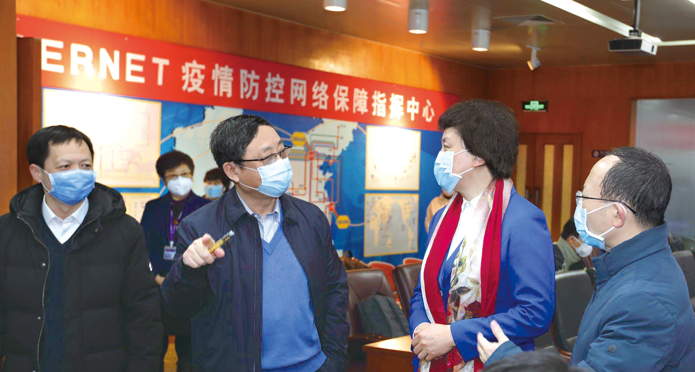 这天早上,继1月24日、2月7日两次调研疫情防控工作后,清华大学党委书记陈旭再次来到CERNET网络中心。