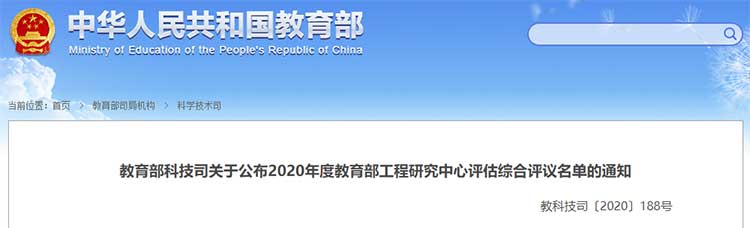教育部公布2020年度教育部工程研究中心评估综合评议名单