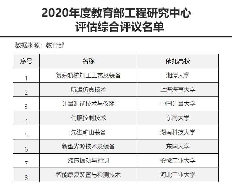 9月15日,教育部科技司印发通知(教科技司〔2020〕188号),公布了2020年度教育部工程研究中心评估综合评议名单。按照要求,9月底,东南大学、中国计量大学、上海海事大学等8所高校的教育部工程研究中心将参加综合评议。