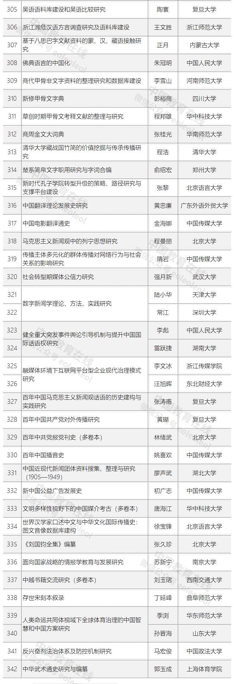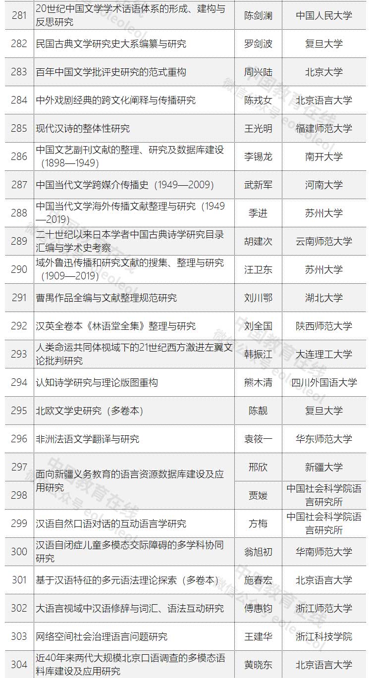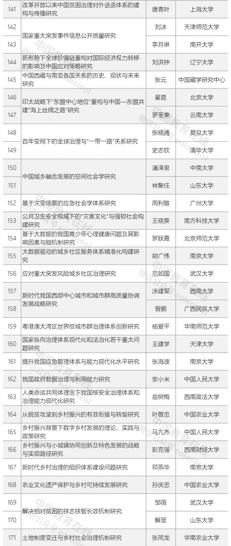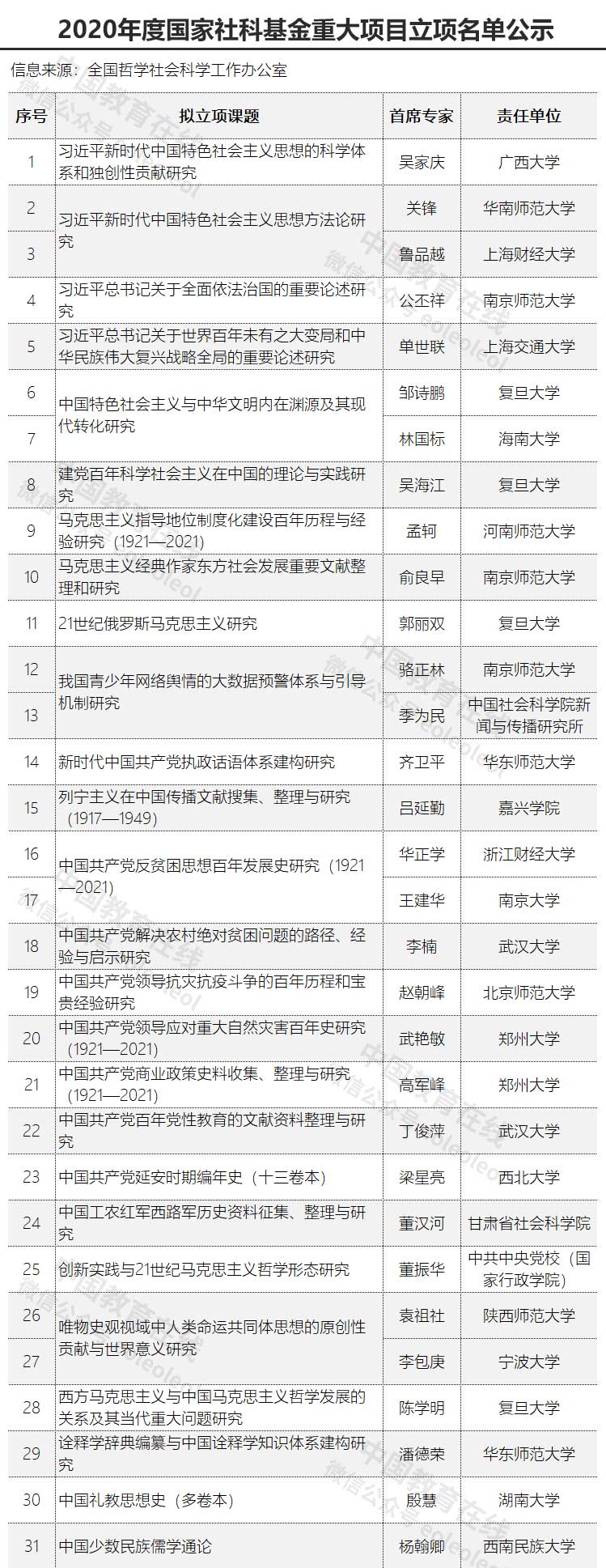2020年度国家社科基金重大项目立项名单公示