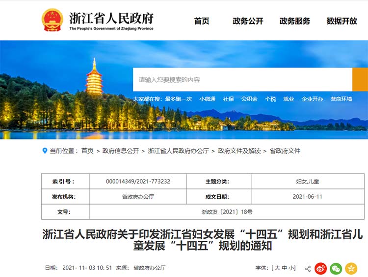 11月3日,浙江省人民政府发布《儿童发展“十四五”规划》,围绕儿童与家庭、健康、安全、教育、福利、法律保护、社会环境7个领域提出68条具体目标措施。其中明确,探索将艺术类科目纳入中考。