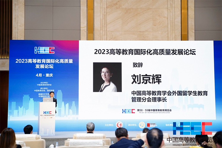 刘京辉在致辞中表示,中国高等教育的对外开放,既是深入贯彻落实党的二十大精神的生动体现,也是世界高等教育领域共同关注的重大话题。在2023年全国教育工作会议上,怀进鹏部长指出“要加快和扩大高水平教育对外开放,自信自立自强,更加精准实施教育、科技、人才国际交流合作,进一步拓宽人才培养国际化路径,更好扩大中国教育国际影响力,服务推动构建人类命运共同体。”这对于高校推动更高水平教育对外开放,做好新时代教育国际交流合作工作具有极强的现实指导意义。她就高等教育国际化高质量发展提出三点建议:一是坚持以党建引领高校国际化高质量发展,二是坚持教育对外开放不动摇,三是推进中外合作办学提质增效。