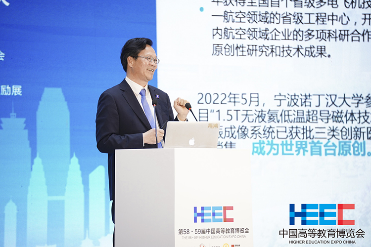 沈伟其从宁波诺丁汉大学的经验出发,作题为《新时代高质量中外合作办学四大作用和四项原则》的精彩报告。他认为,新时代高质量中外合作办学要发挥好四大作用,即国际化人才培养的平台作用、国际科技合作的管道作用、国际人文交流的桥梁作用和国家外交大战略的支点作用。他在报告中表示,新时代高质量中外合作办学要遵循四项原则:一是坚持党建引领发展,确保办学方向;二是坚持学术的国际高标准,确保办学质量;三是坚持办学国际化特色,彰显体制机制优势;四是坚持为地方经济社会发展服务,体现办学价值。