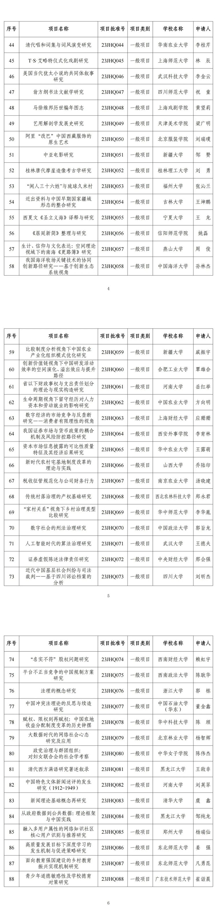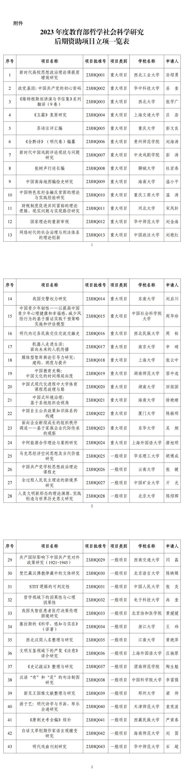 2023年度教育部哲学社会科学研究后期资助项目立项一览表