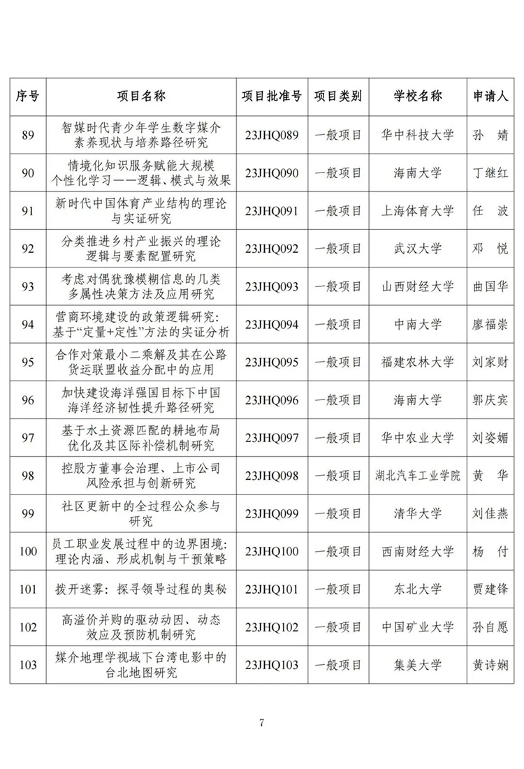近日,教育部印发通知,公布2023年度教育部哲学社会科学研究后期资助项目立项结果,共有103项批准立项。