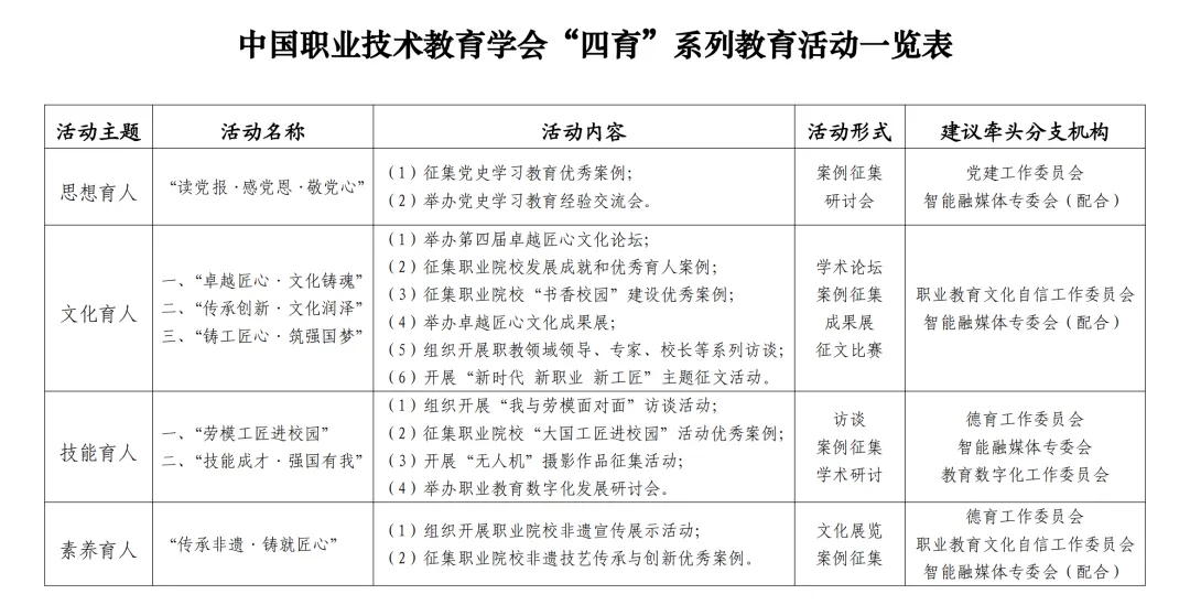 建议牵头分支机构:德育工作委员会、职业教育文化自信工作委员会