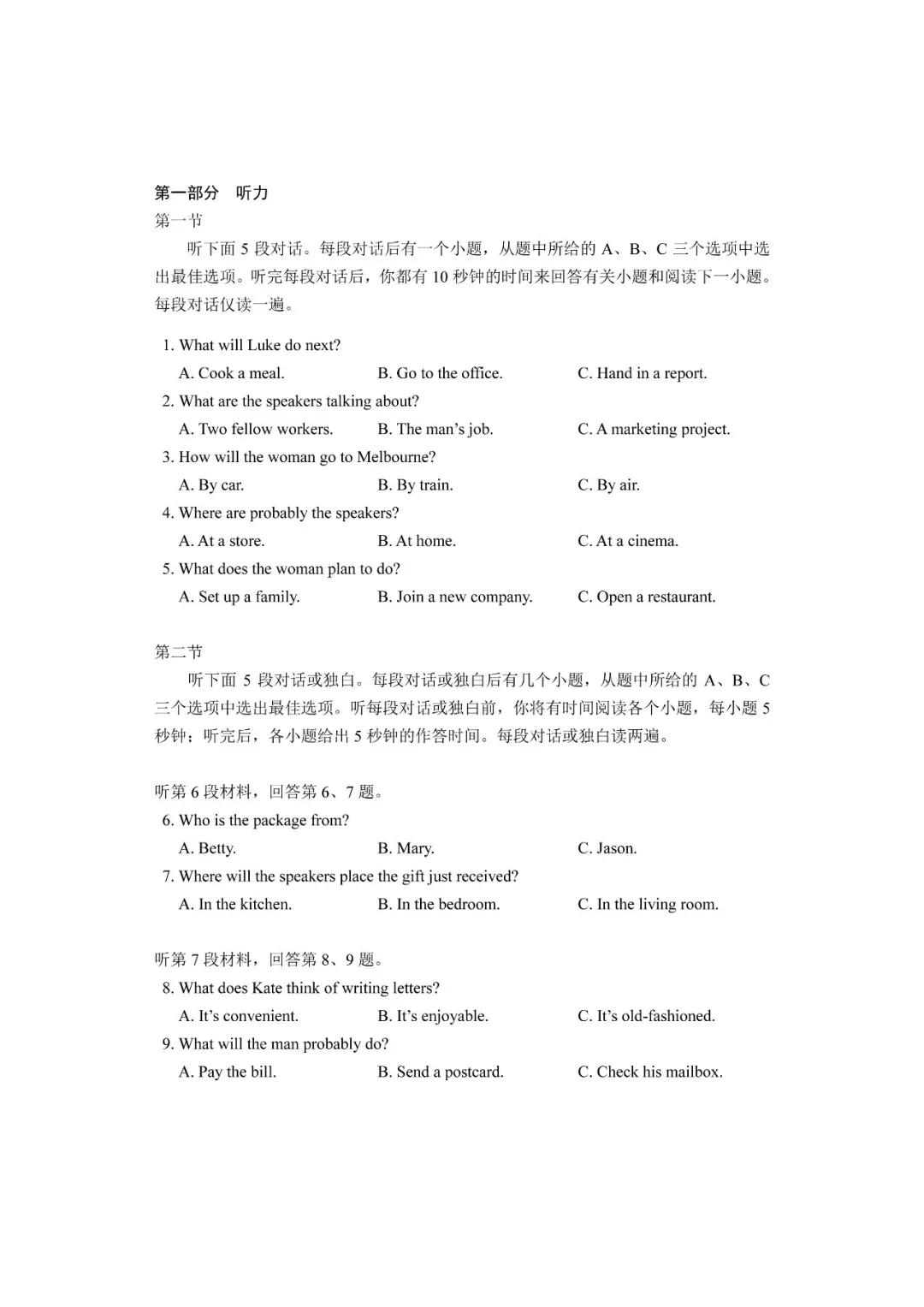 2025年,山西、河南、陕西、内蒙古、四川、云南、宁夏、青海等第五批高考综合改革省、自治区将要首考落地,为实现平稳过渡,相关省区组织了适应性演练。英语科适应性测试题由教育部教育考试院命制,可供依据《普通高中英语课程标准(2017年版2020年修订)》教学、使用高考全国卷的省区市参考。