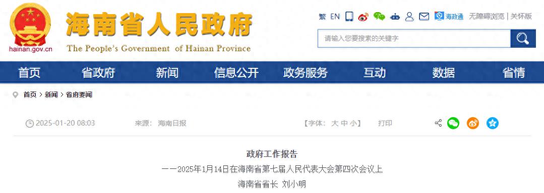 1月14日,海南省第七届人民代表大会第四次会议在海口开幕,海南省省长刘小明代表省政府向大会作政府工作报告。