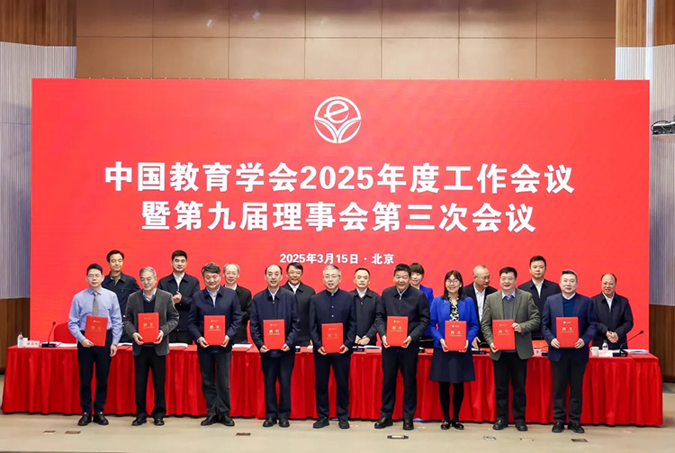 3月15日上午,中国教育学会2025年度工作会议暨第九届理事会第三次会议在京召开。会议以习近平新时代中国特色社会主义思想为指导,深入学习贯彻党的二十大、二十届三中全会和2025年全国“两会”精神,贯彻落实全国教育大会和2025年全国教育工作会议精神,安排部署学会2025年重点工作。中国教育学会会长朱之文出席会议并讲话。全国政协委员、中国教育学会顾问郑富芝出席会议。教育部基础教育司司长田祖荫、教材局局长田立新、校外教育培训监管司司长范海林、教师工作司司长俞伟跃、体育卫生与艺术教育司一级巡视员郝风林、教育督导局副局长杨宇、直属机关党委副书记吴昊等出席会议,有关司局负责同志作专题报告。会议由中国教育学会常务副会长吕玉刚主持。中国教育学会副会长、秘书长杨银付受理事会委托向大会报告2024年学会工作情况。学会副会长、山东大学党委书记任友群,学会副会长、华中师范大学教授、湖北省人大常委会原副主任周洪宇等出席会议。