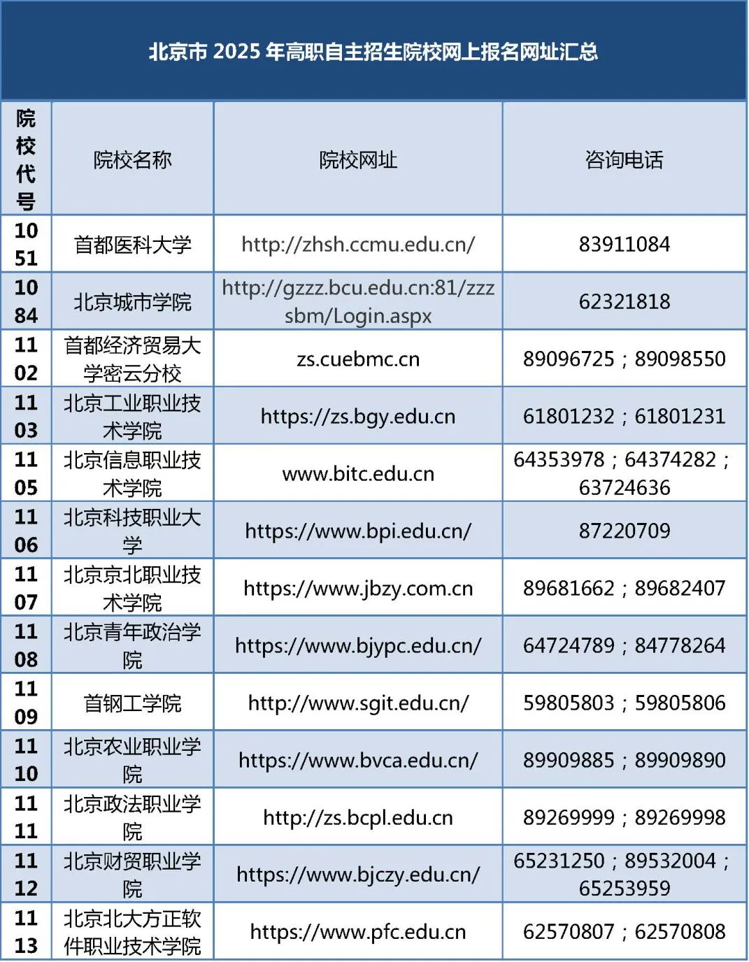 3月20日,北京教育考试院网站发布《关于做好北京市2025年高等职业教育自主招生工作的通知》。2025年,北京继续开展高等职业教育自主招生工作。3月22日至26日,考生可按招生院校的要求办理报名手续,每名考生限报一所院校。