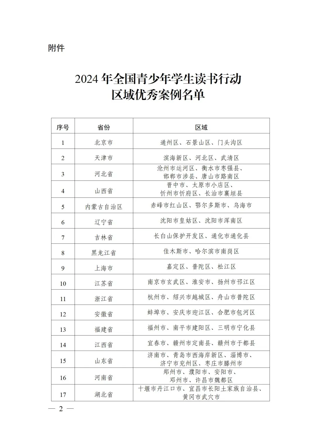 近日,教育部公布2024年全国青少年学生读书行动区域优秀案例名单,经各省级教育行政部门推荐,最终确定98个区域优秀案例。
