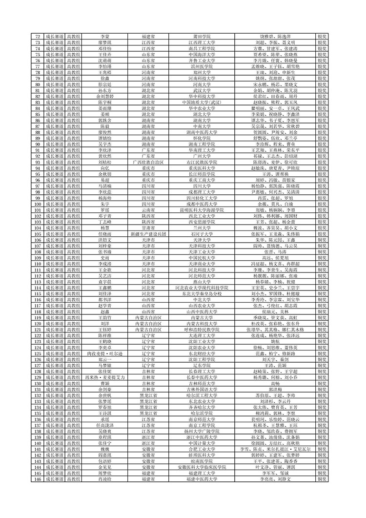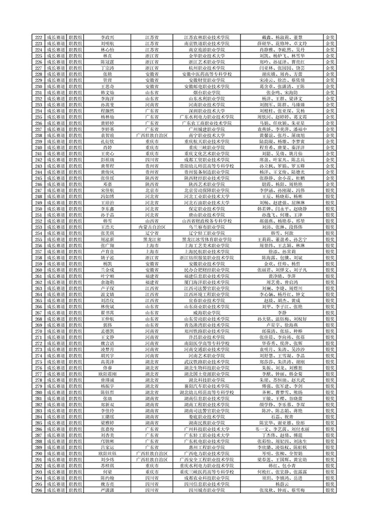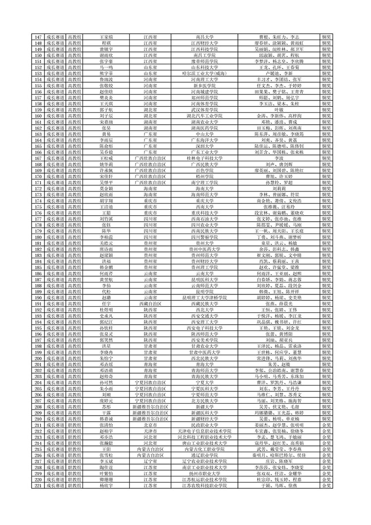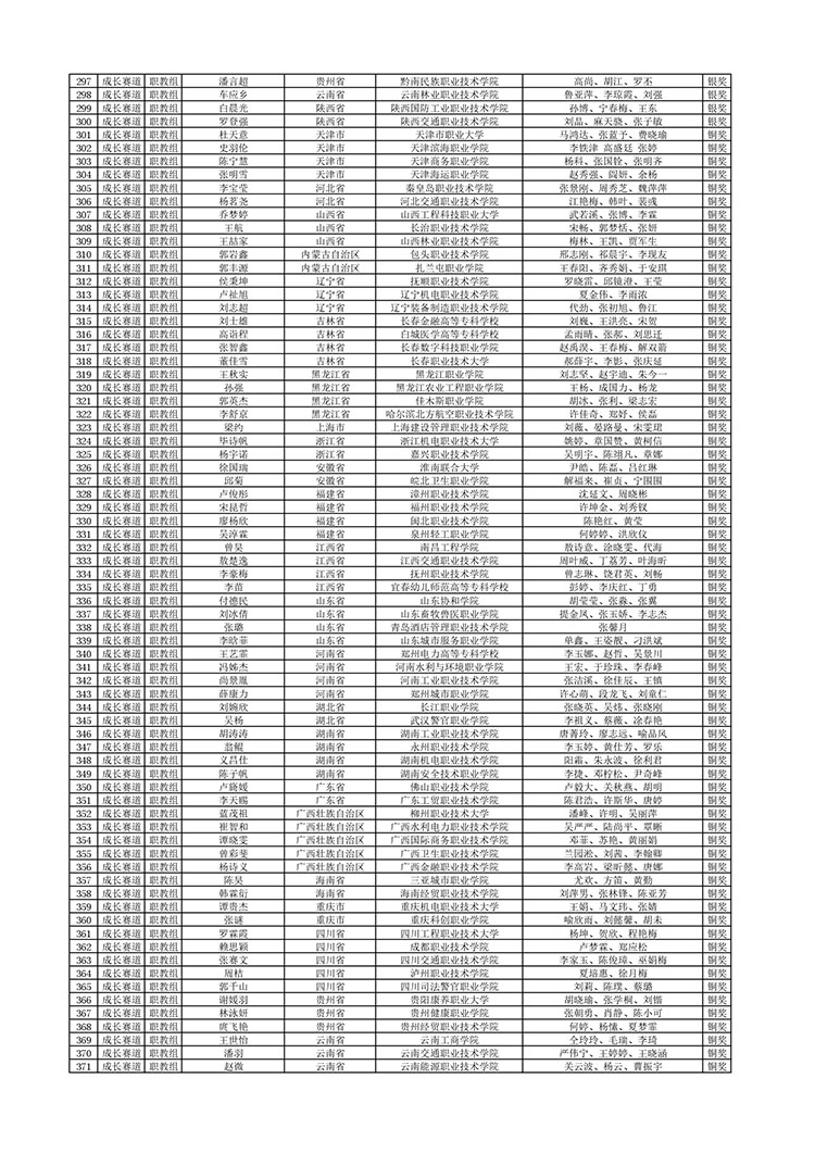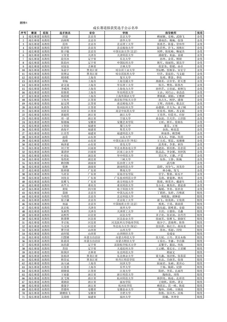 1.成长赛道拟获奖选手公示名单