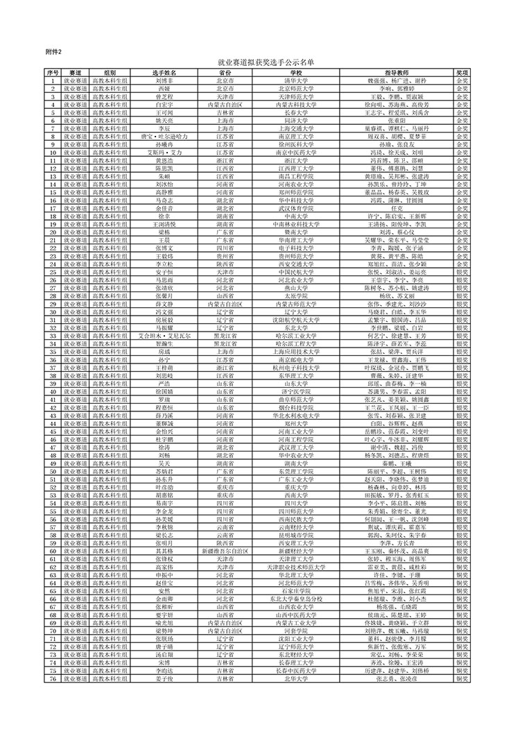 2.就业赛道拟获奖选手公示名单