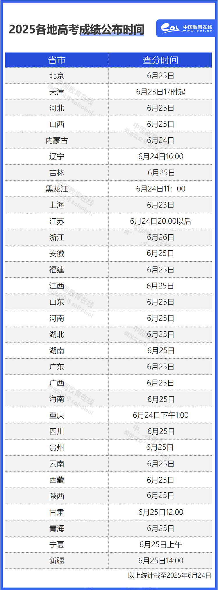 预计于6月25日晚公布各批次录取控制分数线和考生成绩。