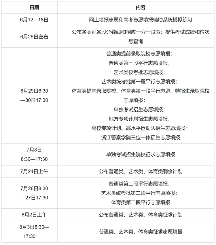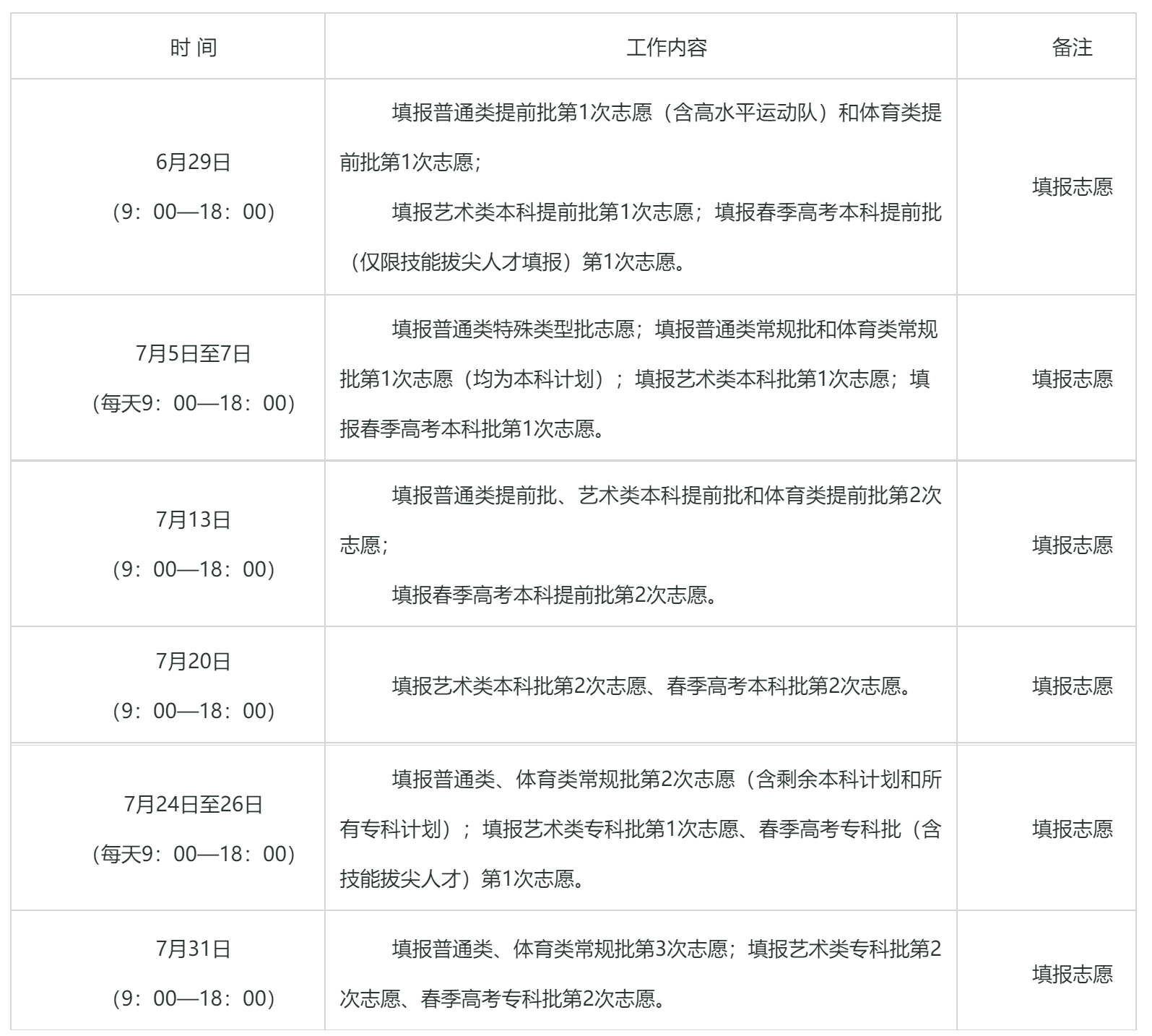 (3)7月5日 8:00—7日18:00。填报:普通高职(专科)提前批、普通高职(专科)批、艺术高职(专科)批、体育高职(专科)批志愿。