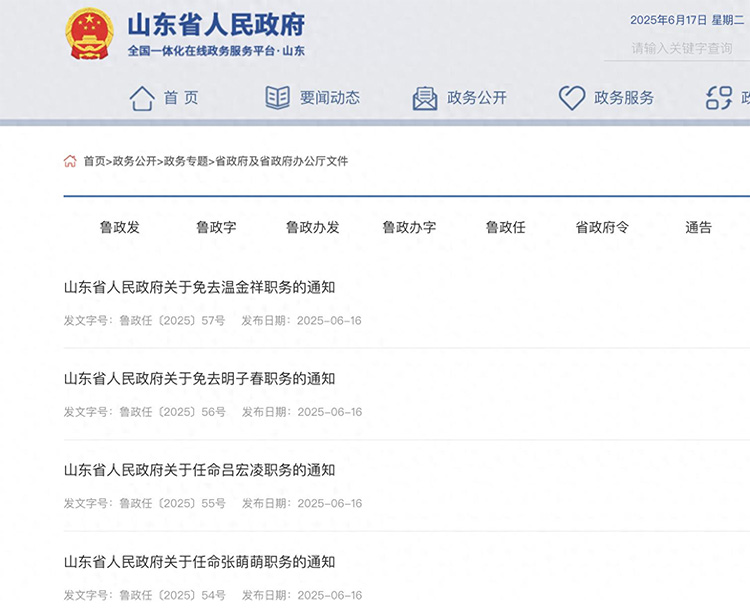 6月16日,山东省人民政府网站发布一批人事任免的通知。其中涉及临沂大学、青岛科技大学、济南大学、聊城大学、山东交通学院、山东石油化工学院、山东商业职业技术学院、山东城市服务职业学院、烟台职业学院等多所高校。