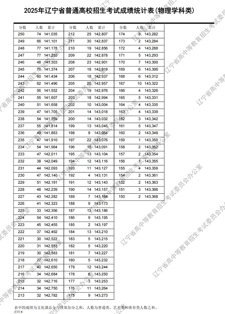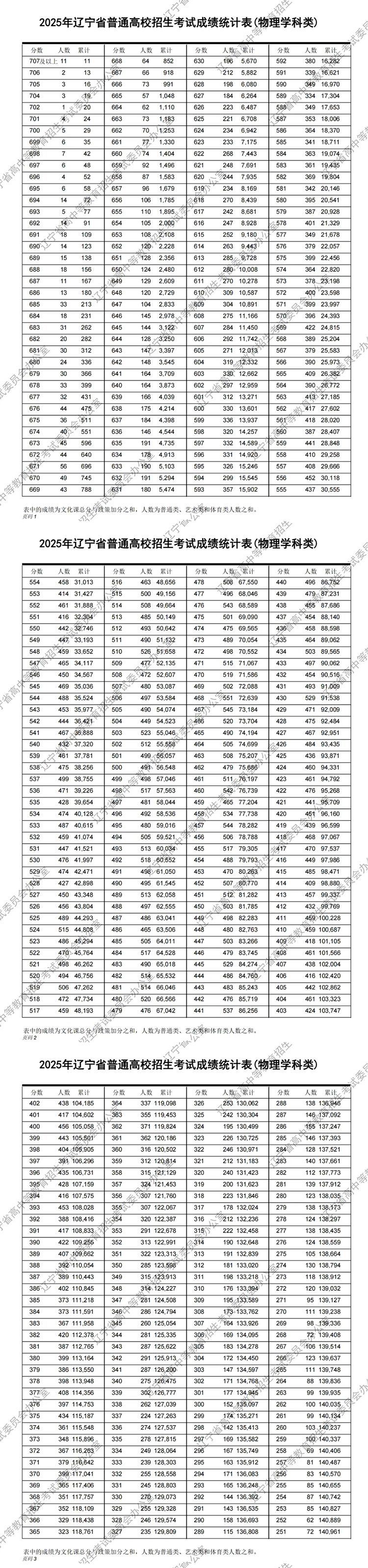 2025年辽宁省普通高校招生考试成绩统计表(物理学科类)