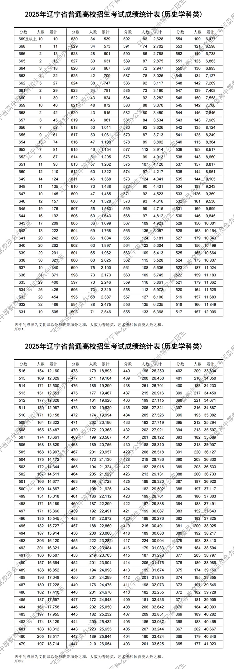 2025年辽宁省普通高校招生考试成绩统计表(历史学科类)