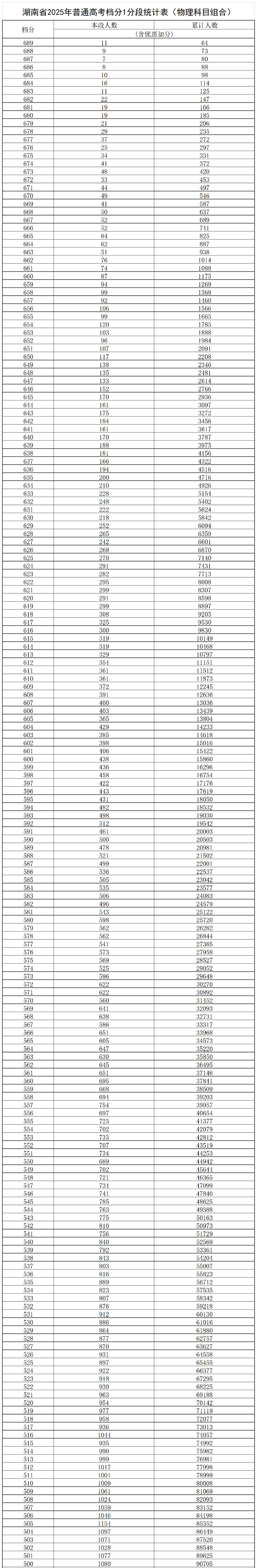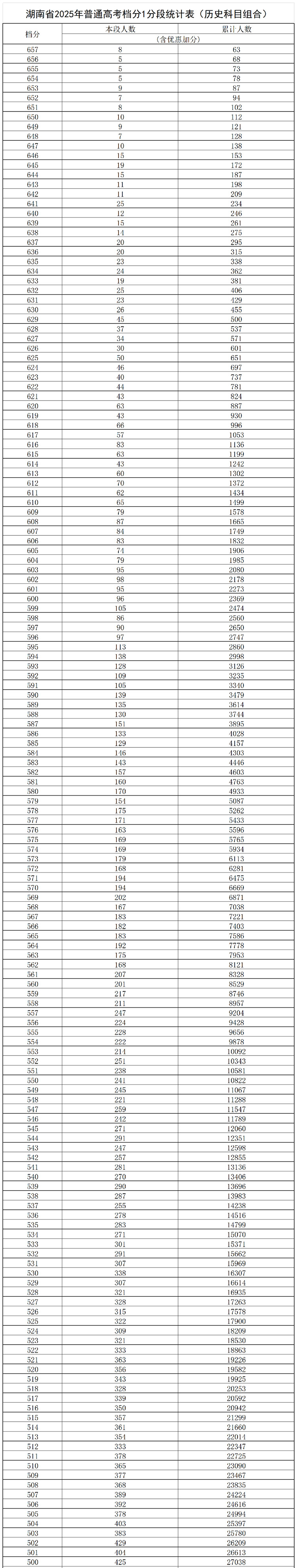 2025湖南高考一分一段表