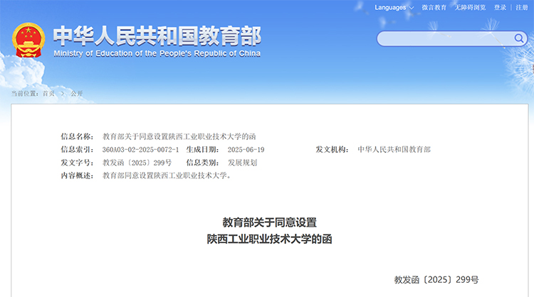 近日,教育部正式复函陕西省,同意以陕西工业职业技术学院为基础设立陕西工业职业技术大学,学校全日制在校生规模暂定为2万人。同意首批设置机械设计制造及自动化、材料成型及控制工程、自动化技术与应用、计算机应用工程、应用化工技术、建筑工程等6个职业本科专业。