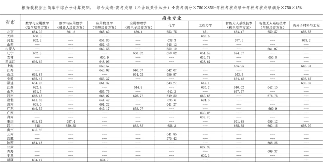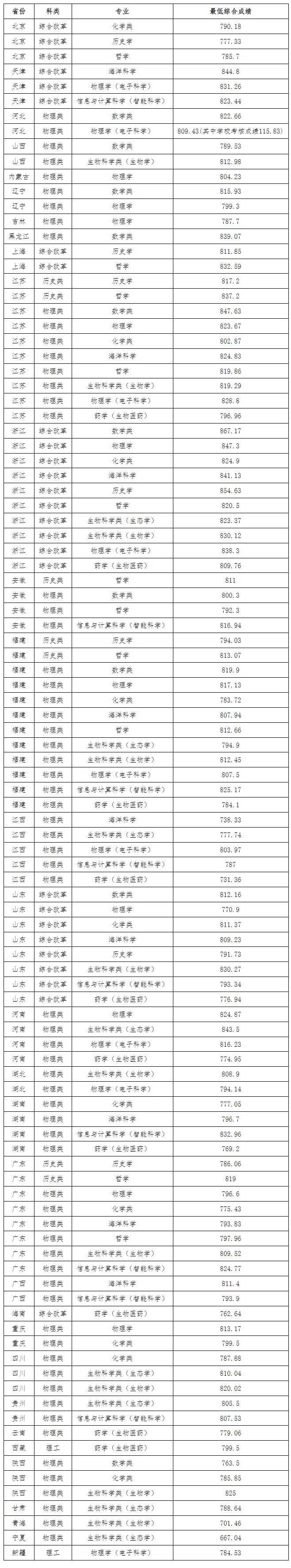 备注:若考生综合成绩相同,则依次按能力考核成绩、物理成绩、高考成绩、数学成绩、语文成绩、外语成绩、体育测试成绩排队(申请免体测考生体育测试成绩排序位于所有参加考试的考生最后)。