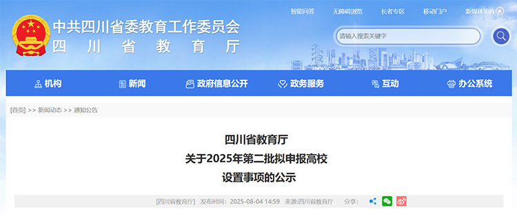 四川省教育厅关于2025年第二批拟申报高校设置事项的公示