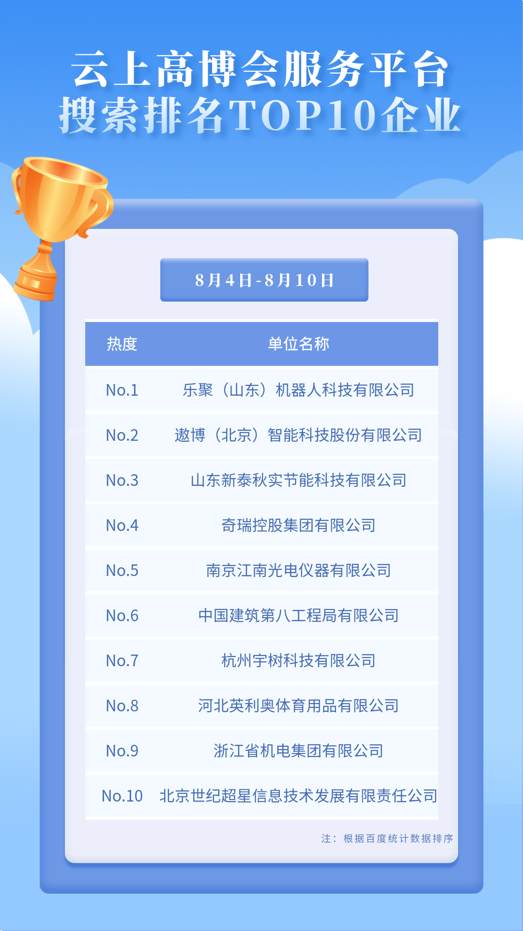 云上高博会热搜榜(8.4-8.10)TOP10企业、高校榜单揭晓