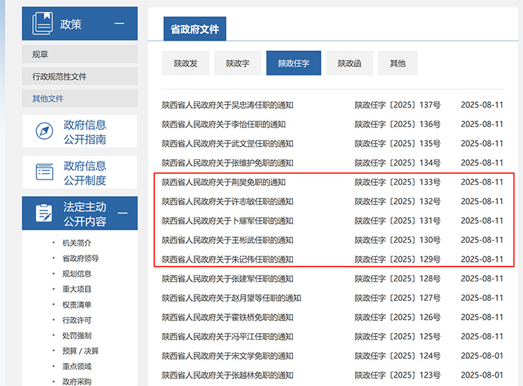 8月11日,陕西省人民政府网站发布一批人事任免通知,其中涉及西安理工大学、陕西学前师范学院、榆林学院、西安戏剧学院、西安邮电大学等多所高校。