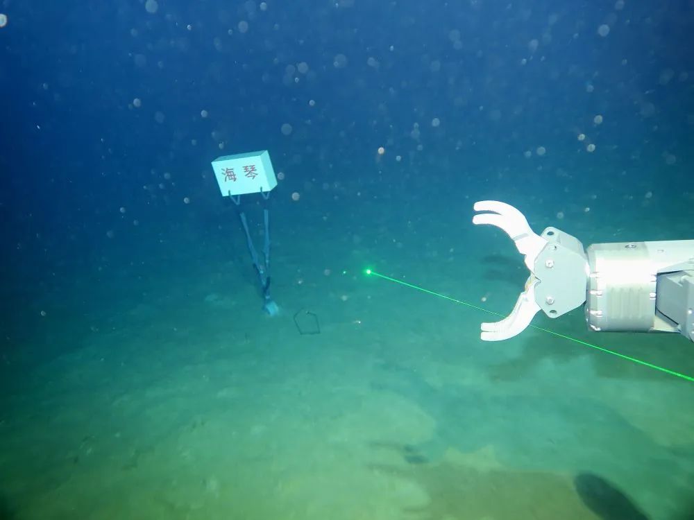 8月23日,“海琴”号在4140米深海底放置标识。(中山大学供图)