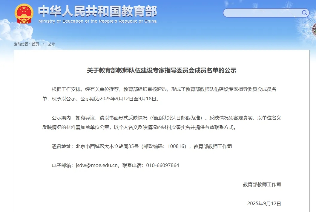 多位院士入选!教育部教师队伍建设专家指导委员会成员名单公示