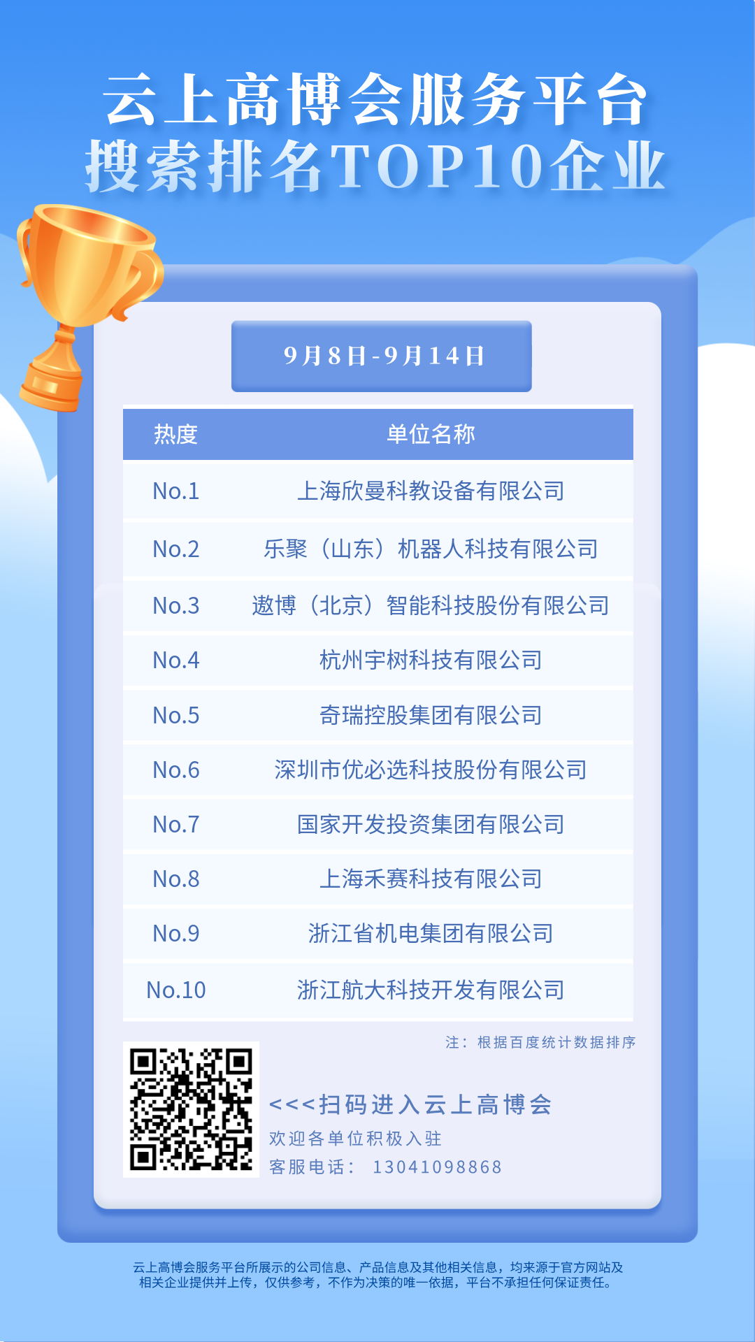 云上高博会热搜榜(9.8-9.14)TOP10企业、高校榜单来啦