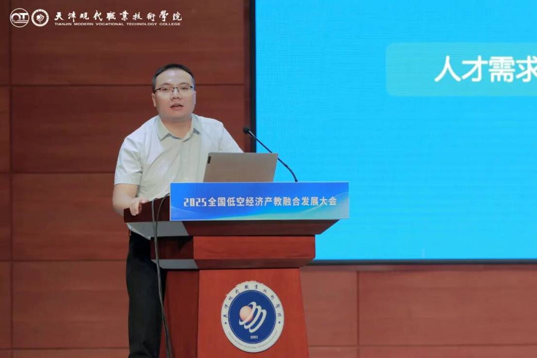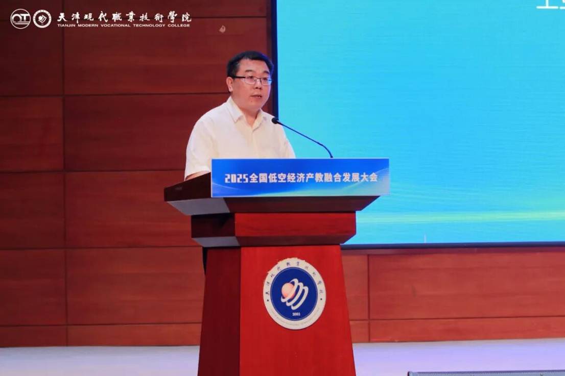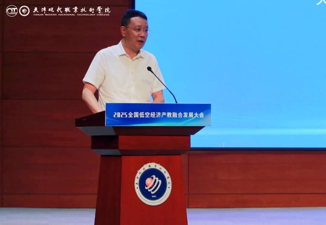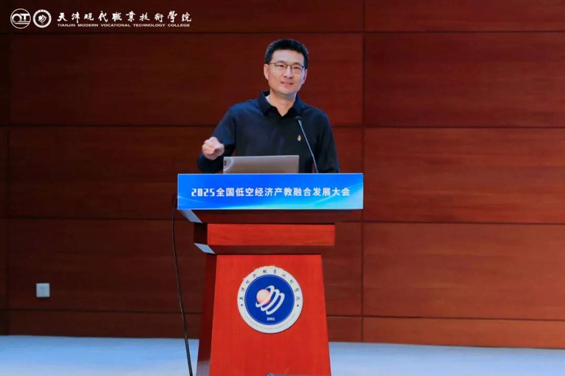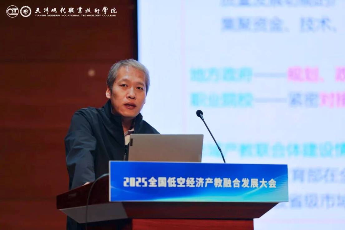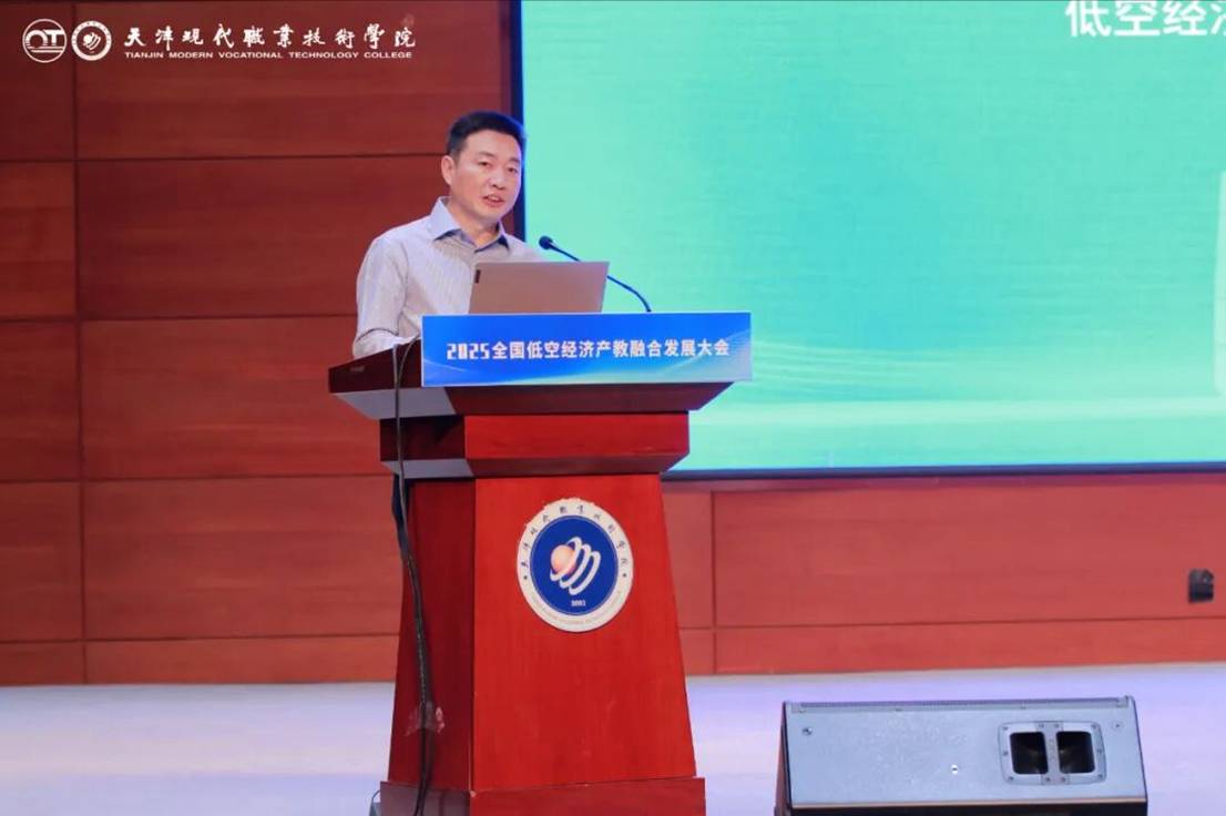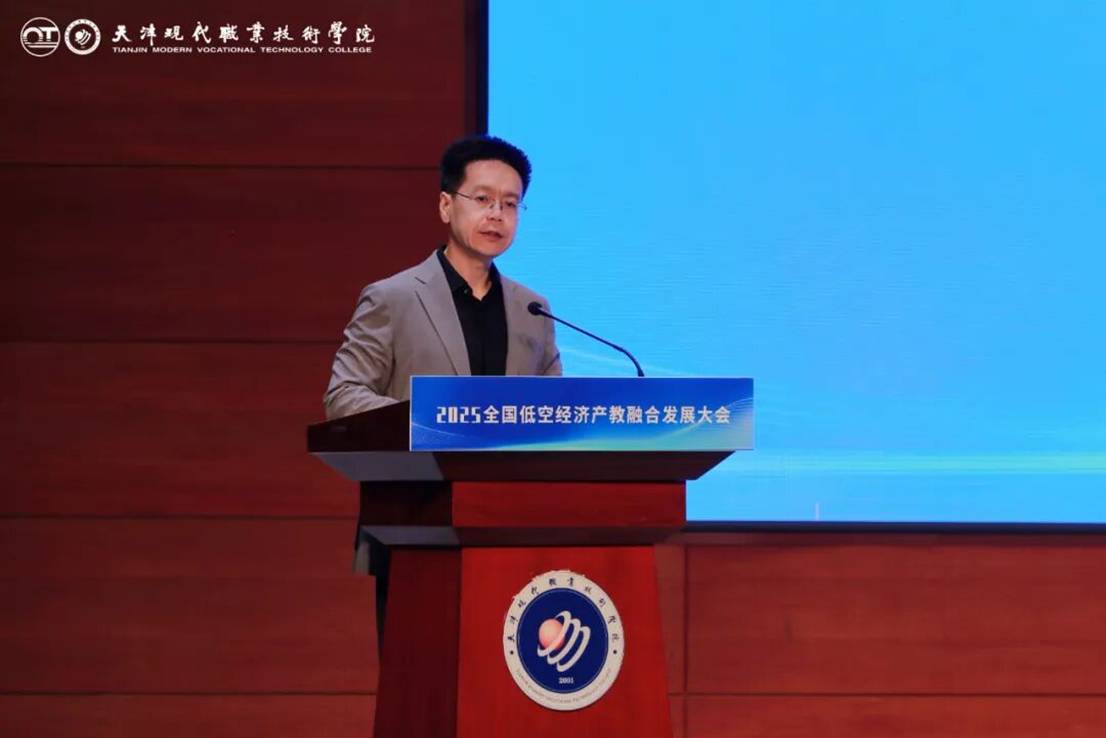 天津市教育委员会职教处处长李力致辞表示,天津正在紧密聚焦现代职业教育体系改革高地、全国职业教育师资培养基地和职业教育世界交往中心三重定位推进职业教育。面对低空经济发展对跨领域人才的新需求,他提出三点愿景:一是以标准体系为基础,构建产教融合新范式。推动专业设置、课程建设、人才认证等方面,推动标准体系的形成;二是以实践创新为驱动,激活人才培养新动能。鼓励校企共建实训基地、共研教学资源、共同开发课程,将企业真实场景和前沿技术融入育人全过程;三是以开放协同为纽带,打造国际化发展新格局。依托鲁班工坊品牌、世界大会机制和上合中心平台,推动低空经济人才培养标准与创新成果走向世界,增强我国在全球低空经济领域的话语权和竞争力。