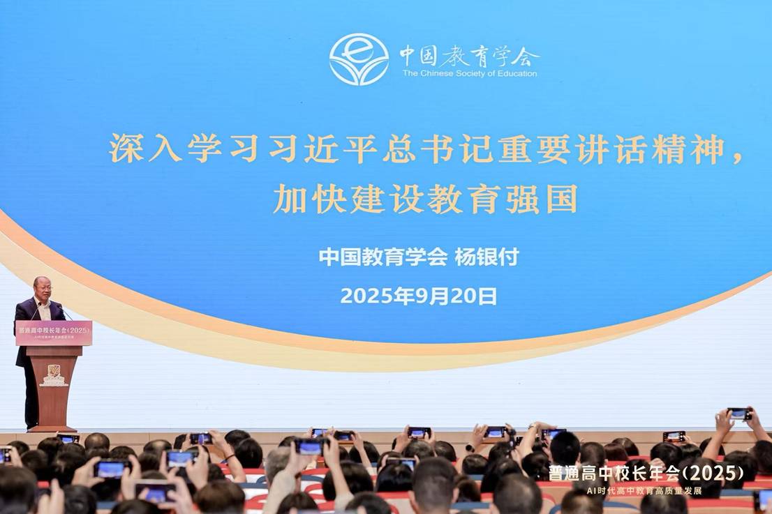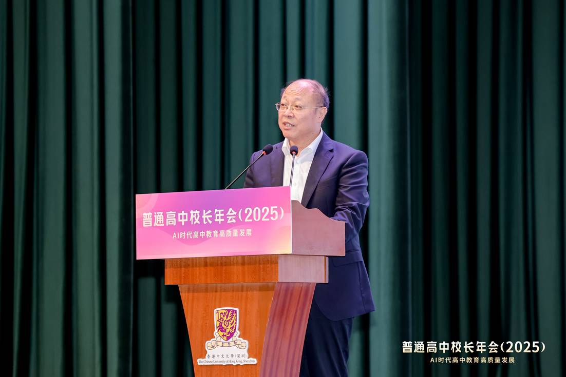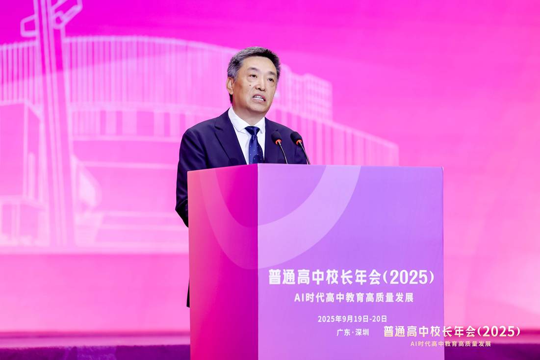 2025年9月19-20日,普通高中校长年会(2025)在广东深圳举办,会议主题为“AI时代高中教育高质量发展”。本次年会由中国教育学会指导、中国教育学会高中教育专业委员会主办、香港中文大学(深圳)承办。深圳市委副书记、市长覃伟中,中国教育学会名誉会长顾明远先生,中国教育学会常务副会长吕玉刚,广东省教育厅副厅长李璧亮,经合组织教育与技能司司长安德烈亚斯·施莱歇尔在会上致辞。中国教育学会副会长、秘书长杨银付主持开幕式和主旨报告环节。全国教育领域专家学者,普通高中学校书记、校长、教师代表,深圳市各区及有关部门负责人等2000余人现场参会。