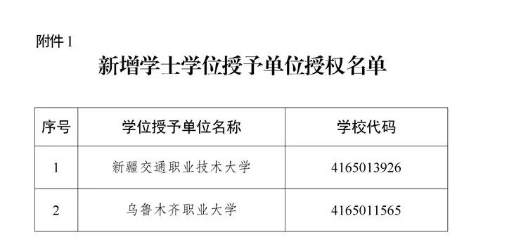 从新增学士学位授予单位名单来看,本次新增学士学位授予单位共2所,均为职业本科院校。在国家大力发展职业教育、推动职业本科教育建设的背景下,这2所职业院校成功获得学士学位授予权,将进一步完善新疆职业教育体系,为区域培养更多高层次技术技能人才。