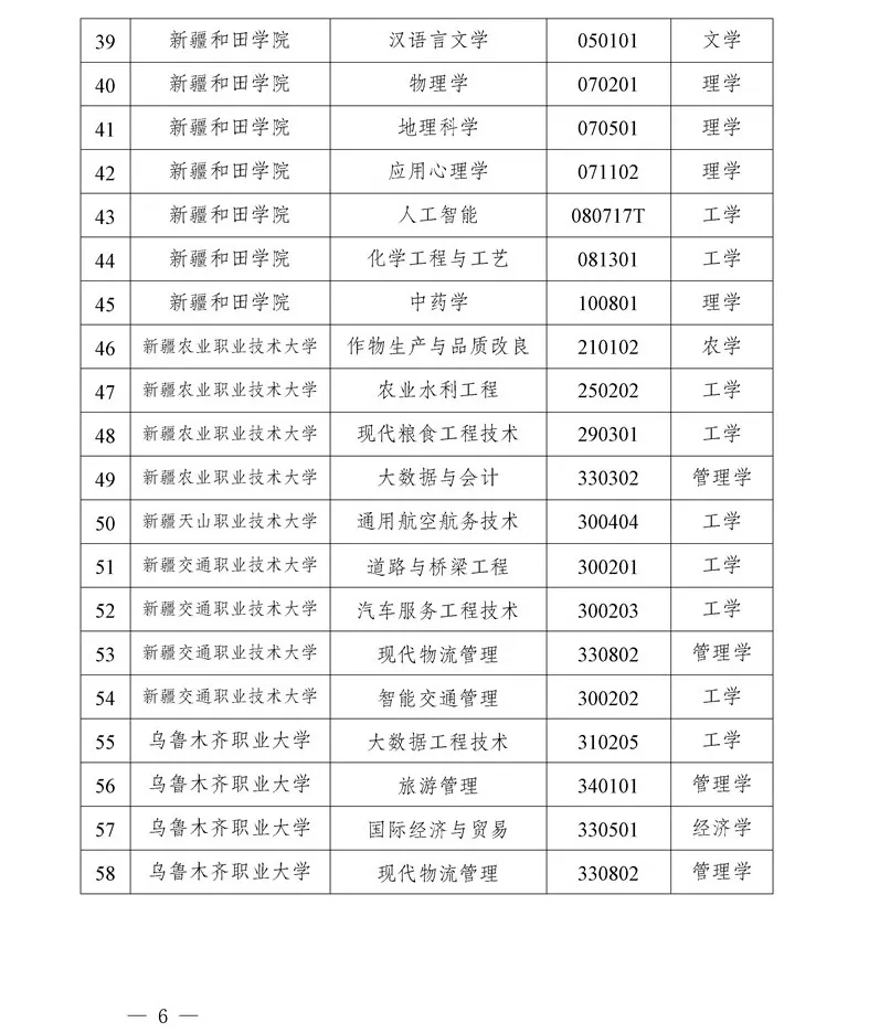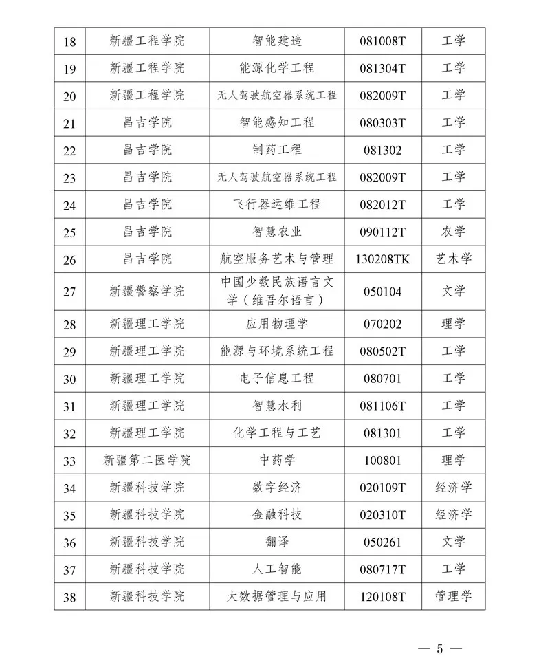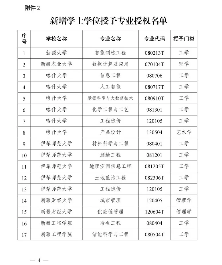 从新增学士学位授予专业名单来看,涵盖工学、理学、管理学、经济学、文学、农学、艺术学等多个门类,其中工学类专业数量最多,占比超过一半。工学类专业的大量增设,能够为新疆工业领域如能源、制造、交通等行业培养急需的专业技术人才。